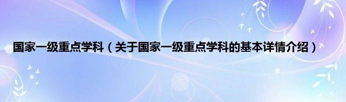 大家好我是小蝌蚪,国家一级重点学科,关于国家一级重点学科的基本详情介绍很多人还不知道,那么现在让我们一起来看看吧!