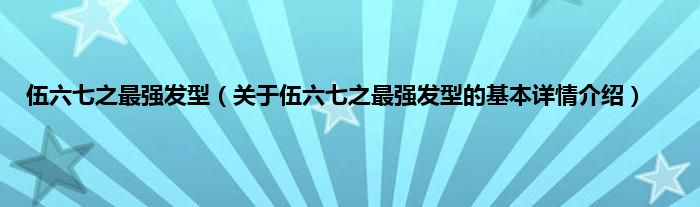 本文关于伍六七之最强发型的基本详情介绍就讲解完毕,希望对大家有所帮助。
