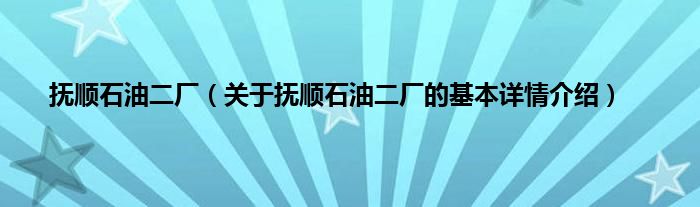 本文关于抚顺石油二厂的基本详情介绍就讲解完毕,希望对大家有所帮助。