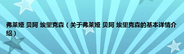 本文关于弗莱娅 贝阿 埃里克森的基本详情介绍就讲解完毕,希望对大家有所帮助。