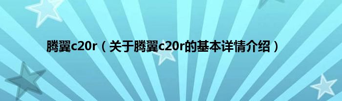 本文关于腾翼c20r的基本详情介绍就讲解完毕,希望对大家有所帮助。