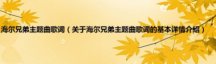 本文关于海尔兄弟主题曲歌词的基本详情介绍就讲解完毕,希望对大家有所帮助。