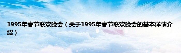 本文关于1995年春节联欢晚会的基本详情介绍就讲解完毕,希望对大家有所帮助。