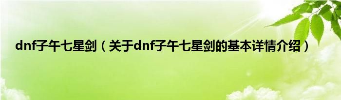 本文关于dnf子午七星剑的基本详情介绍就讲解完毕,希望对大家有所帮助。