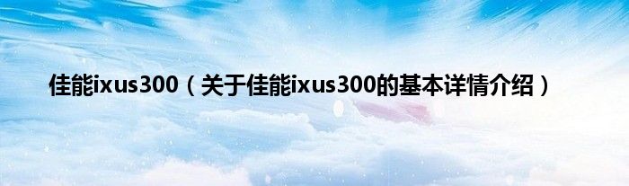 本文关于佳能ixus300的基本详情介绍就讲解完毕,希望对大家有所帮助。