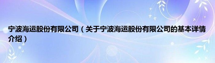 本文关于宁波海运股份有限公司的基本详情介绍就讲解完毕,希望对大家有所帮助。