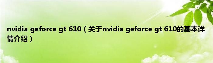 本文关于nvidia geforce gt 610的基本详情介绍就讲解完毕,希望对大家有所帮助。