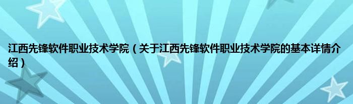 本文关于江西先锋软件职业技术学院的基本详情介绍就讲解完毕,希望对大家有所帮助。