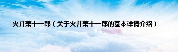 火并萧十一郎(关于火并萧十一郎的基本详情介绍)