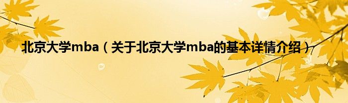 本文关于北京大学mba的基本详情介绍就讲解完毕,希望对大家有所帮助。
