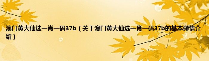本文关于澳门黄大仙选一肖一码37b的基本详情介绍就讲解完毕,希望对大家有所帮助。