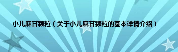 本文关于小儿麻甘颗粒的基本详情介绍就讲解完毕,希望对大家有所帮助。