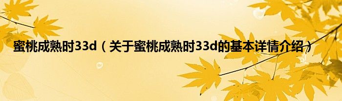 蜜桃成熟时33d(关于蜜桃成熟时33d的基本详情介绍)