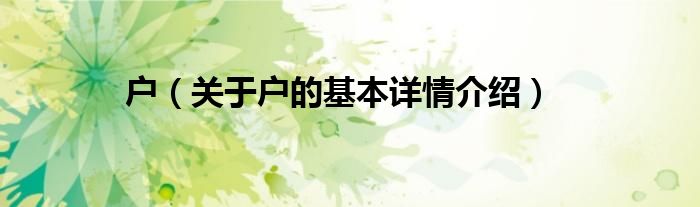 户(关于户的基本详情介绍)
