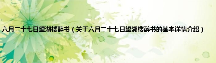 本文关于六月二十七日望湖楼醉书的基本详情介绍就讲解完毕,希望对大家有所帮助。