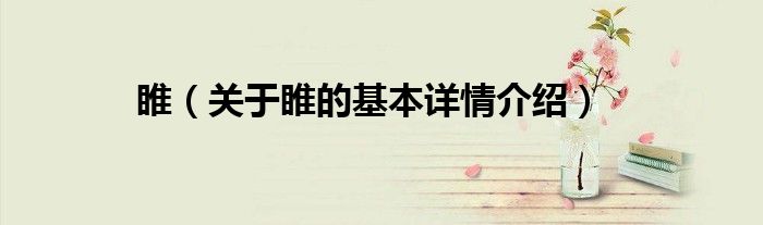 大家好我是小蝌蚪,睢,关于睢的基本详情介绍很多人还不知道,那么现在让我们一起来看看吧!