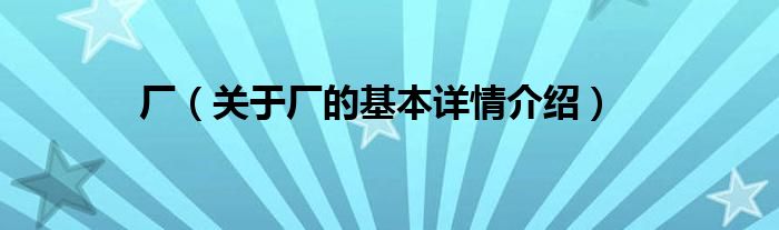厂(关于厂的基本详情介绍)