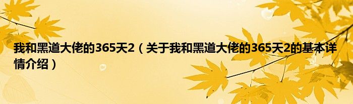 本文关于我和黑道大佬的365天2的基本详情介绍就讲解完毕,希望对大家有所帮助。
