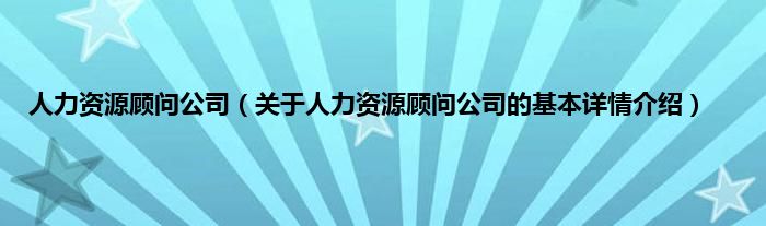 本文关于人力资源顾问公司的基本详情介绍就讲解完毕,希望对大家有所帮助。