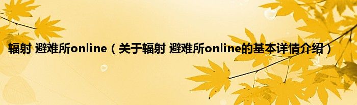 本文关于辐射 避难所online的基本详情介绍就讲解完毕,希望对大家有所帮助。