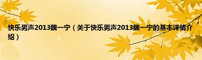 本文关于快乐男声2013魏一宁的基本详情介绍就讲解完毕,希望对大家有所帮助。