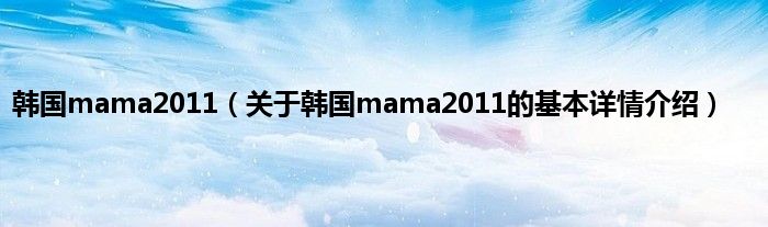 本文关于韩国mama2011的基本详情介绍就讲解完毕,希望对大家有所帮助。