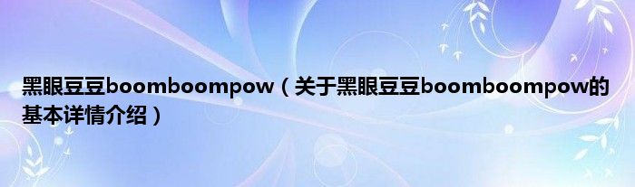 本文关于黑眼豆豆boomboompow的基本详情介绍就讲解完毕,希望对大家有所帮助。