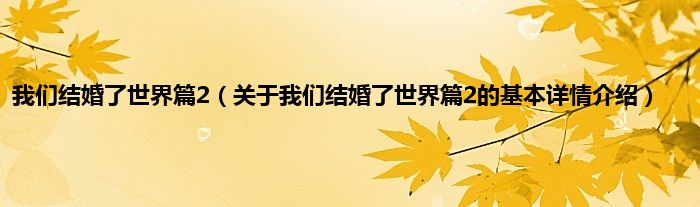 本文关于我们结婚了世界篇2的基本详情介绍就讲解完毕,希望对大家有所帮助。
