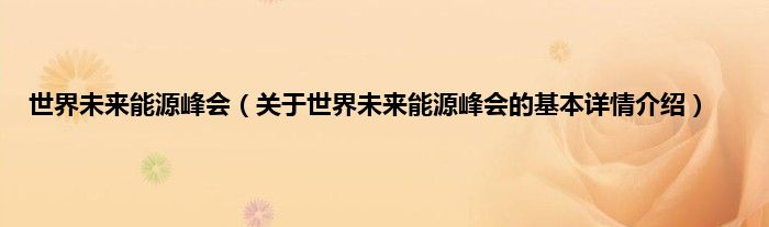 本文关于世界未来能源峰会的基本详情介绍就讲解完毕,希望对大家有所帮助。