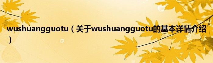 本文关于wushuangguotu的基本详情介绍就讲解完毕,希望对大家有所帮助。
