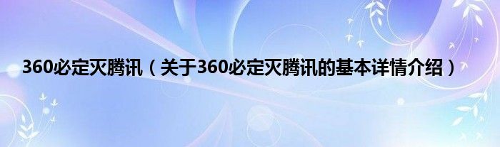 本文关于360必定灭腾讯的基本详情介绍就讲解完毕,希望对大家有所帮助。
