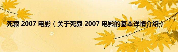 死寂 2007 电影(关于死寂 2007 电影的基本详情介绍)