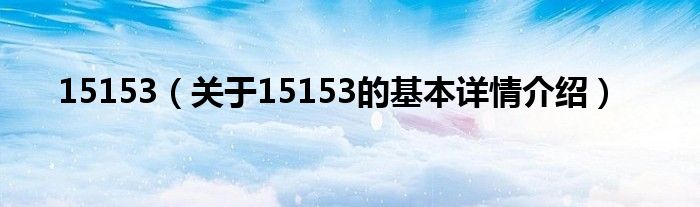 本文关于15153的基本详情介绍就讲解完毕,希望对大家有所帮助。