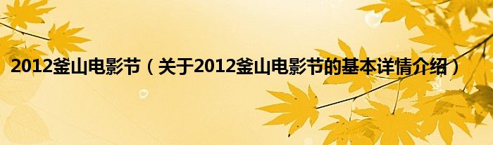 本文关于2012釜山电影节的基本详情介绍就讲解完毕,希望对大家有所帮助。
