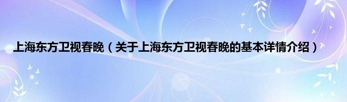 本文关于上海东方卫视春晚的基本详情介绍就讲解完毕,希望对大家有所帮助。