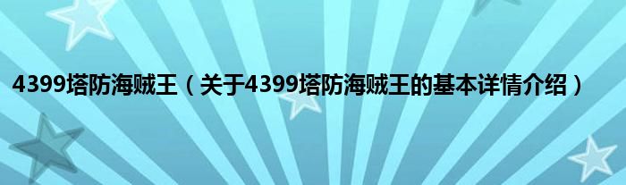 本文关于4399塔防海贼王的基本详情介绍就讲解完毕,希望对大家有所帮助。