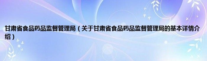 本文关于甘肃省食品药品监督管理局的基本详情介绍就讲解完毕,希望对大家有所帮助。