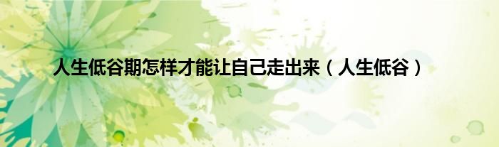 大家好,小问来为大家解答以上问题。人生低谷期怎样才能让自己走出来,人生低谷这个很多人还不知道,现在让我们一起来看看吧!
