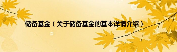 本文关于储备基金的基本详情介绍就讲解完毕,希望对大家有所帮助。