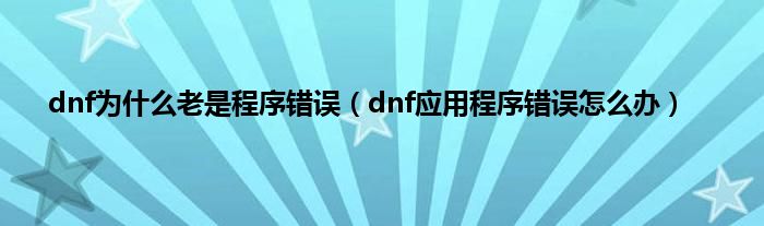 以上就是【dnf为什么老是程序错误,dnf应用程序错误怎么办】相关内容。