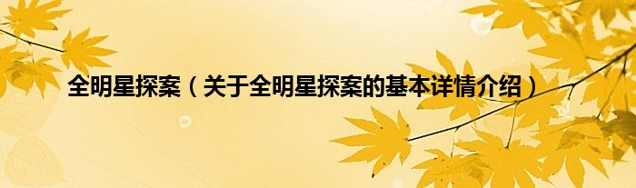 本文关于全明星探案的基本详情介绍就讲解完毕,希望对大家有所帮助。