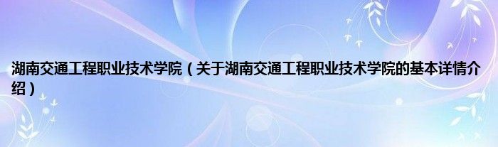 本文关于湖南交通工程职业技术学院的基本详情介绍就讲解完毕,希望对大家有所帮助。