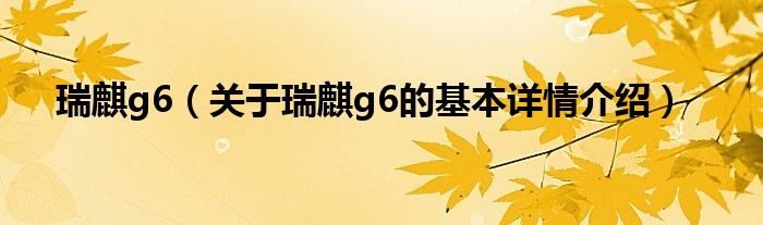 瑞麒g6(关于瑞麒g6的基本详情介绍)