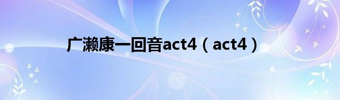 大家好,小问来为大家解答以上问题。广濑康一回音act4,act4这个很多人还不知道,现在让我们一起来看看吧!