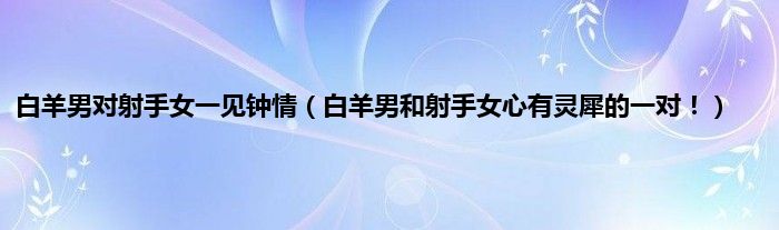 大家好,综合小编来为大家讲解下。白羊男对射手女一见钟情,白羊男和射手女心有灵犀的一对!这个很多人还不知道,现在让我们一起来看看吧!