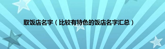 大家好,综合小编来为大家讲解下。取饭店名字,比较有特色的饭店名字汇总这个很多人还不知道,现在让我们一起来看看吧!