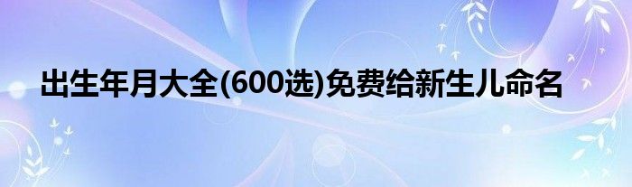 本文出生年月大全(600选)免费给新生儿命名到此分享完毕,希望对大家有所帮助。