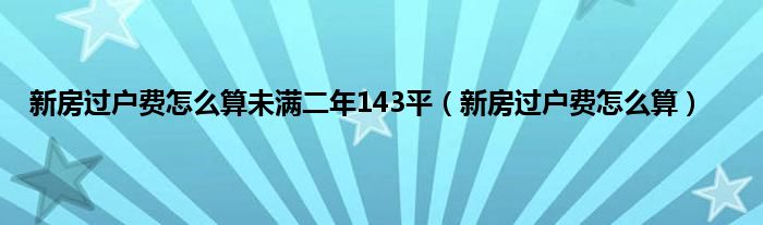 大家好,小问来为大家解答以上问题。新房过户费怎么算未满二年143平,新房过户费怎么算这个很多人还不知道,现在让我们一起来看看吧!
