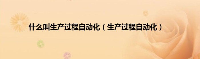大家好,小问来为大家解答以上问题。什么叫生产过程自动化,生产过程自动化这个很多人还不知道,现在让我们一起来看看吧!