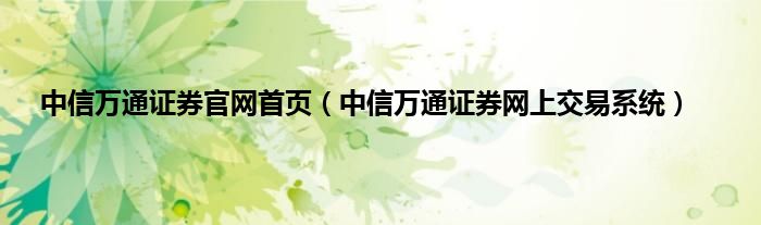 大家好,小问来为大家解答以上问题。中信万通证券官网首页,中信万通证券网上交易系统这个很多人还不知道,现在让我们一起来看看吧!
